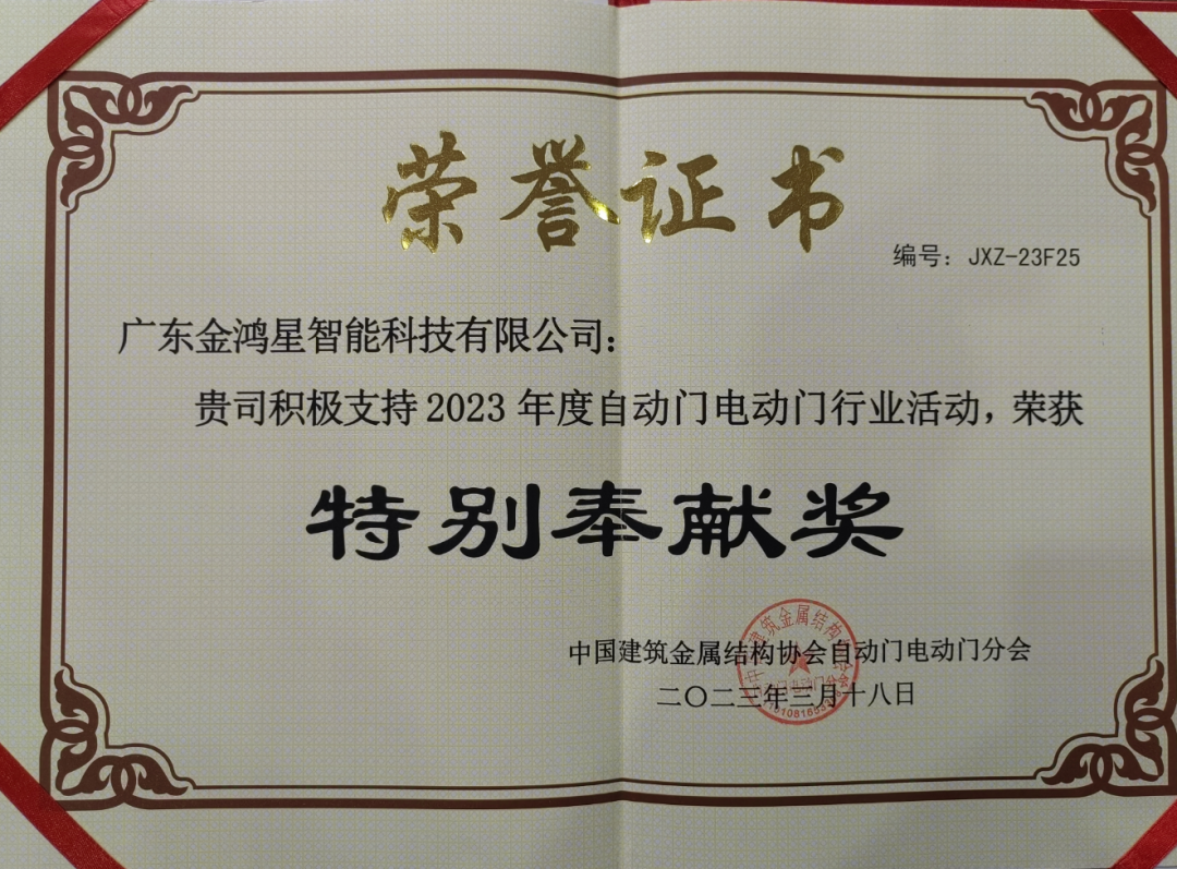 每一次榮耀加冕,每一個輝煌瞬間,都是金鴻星奮發(fā)向上的無盡動力,金鴻星將繼續(xù)堅守匠心精神,以更高品質(zhì)和產(chǎn)品及更優(yōu)質(zhì)的服務(wù),推動電動門行業(yè)的高質(zhì)量發(fā)展。